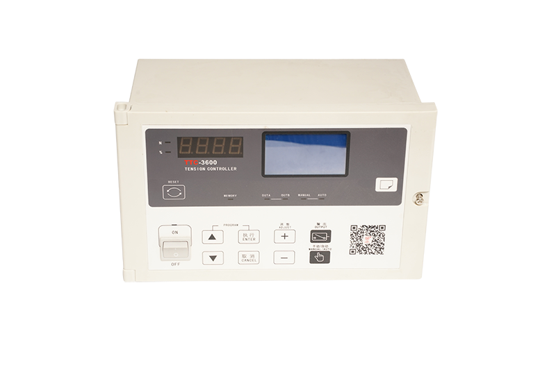 全自動張力控制器是一種高精度、多功能的全數字智能型張力控制器,配合張力檢測器組成閉環張力控制系統。通過接收張力檢測器傳送的信號,經內部PID運算處理后,調節執行機構,自動控制材料的收/放卷張力。全自動張力控制器采用全新的圖形液晶顯示器,中、英文顯示更清晰,并針對磁粉離合器/制動器發出0~24VDC的控制電壓指令,也可輸出0~10V電壓信號控制變頻器、伺服電機或其他執行機構對卷料進行高精度的張力控制。